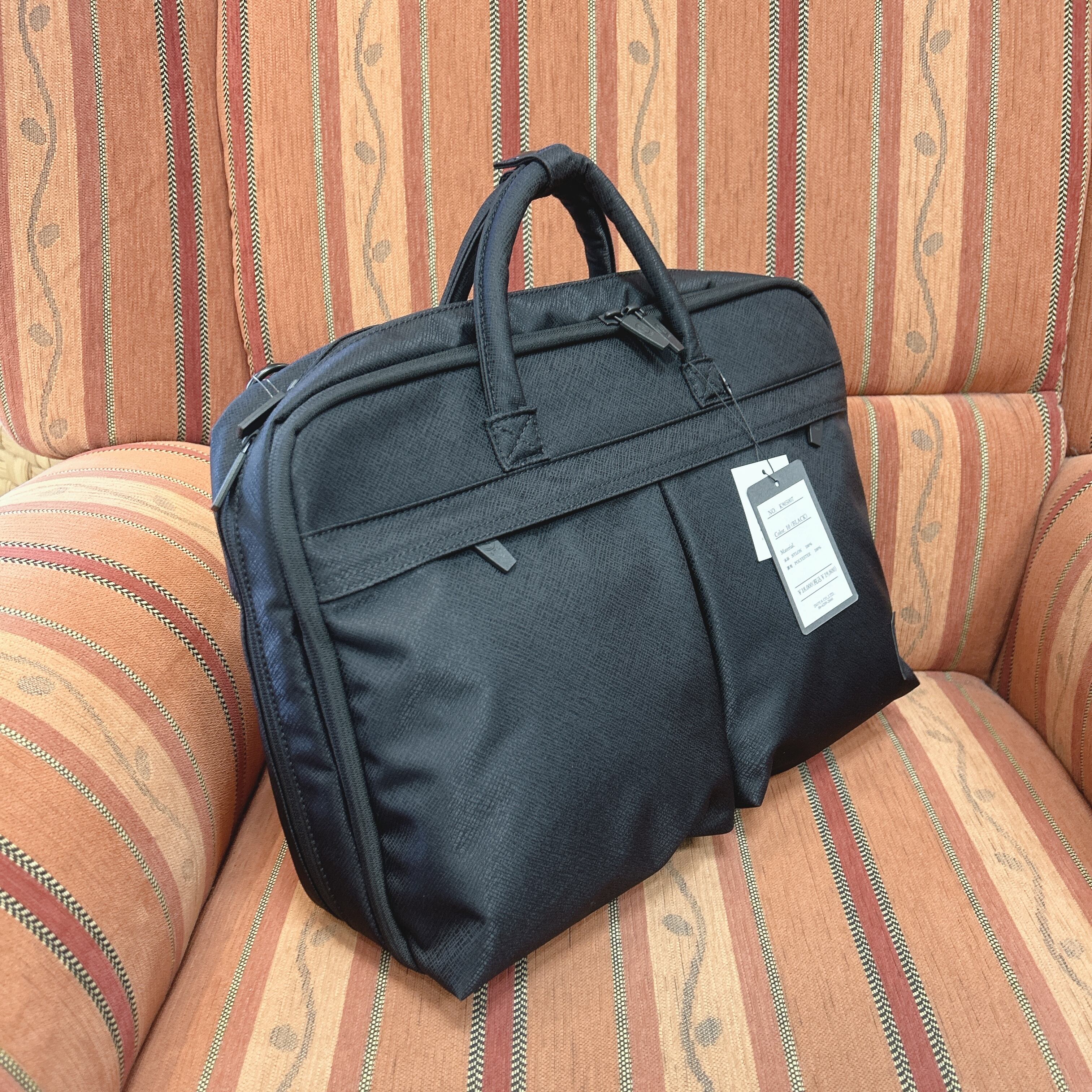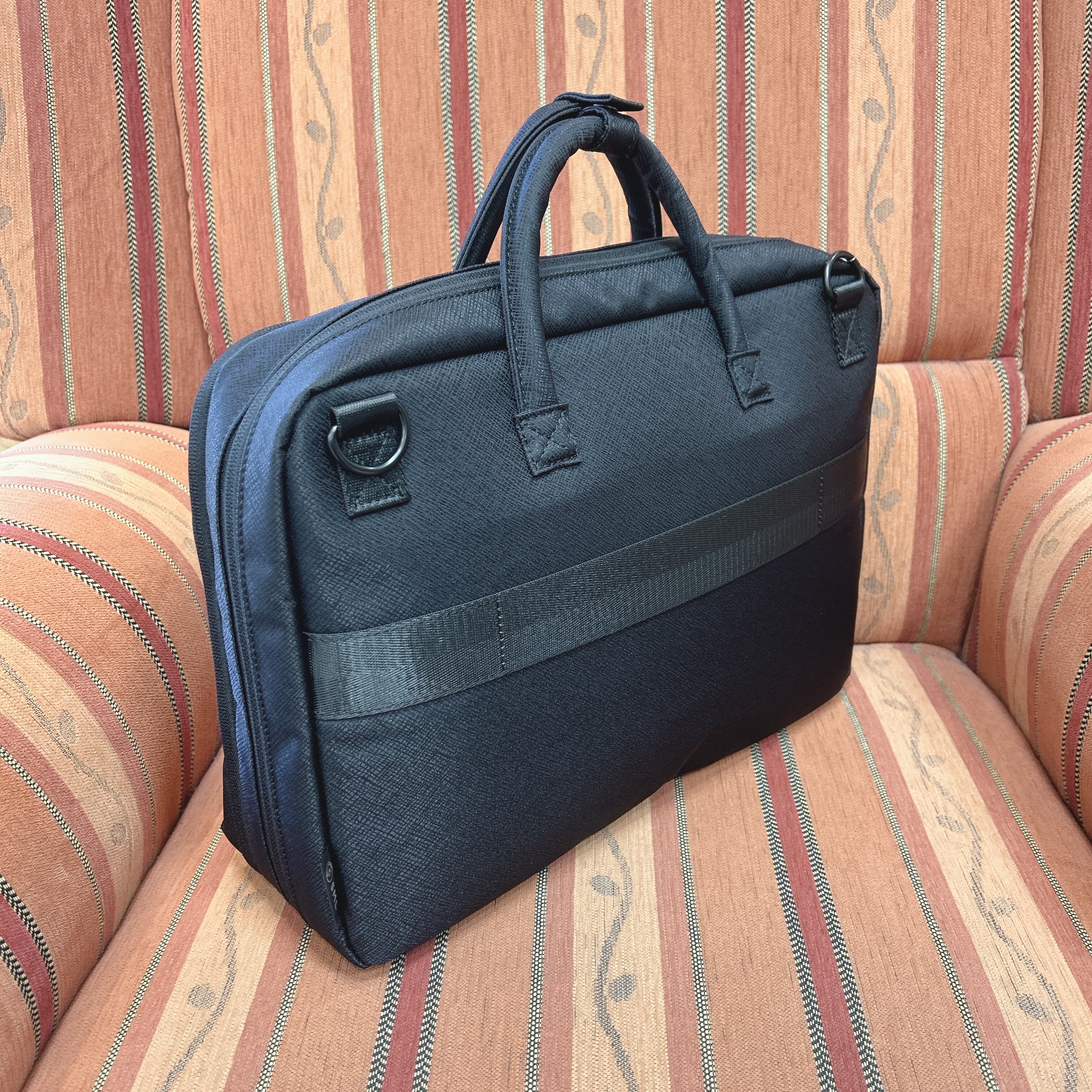 フロントデザインにSMLブランドのアイコン「ヘルメットバッグ」デザインを採用した普段使いにちょうどよいサイズのブリーフケース。
