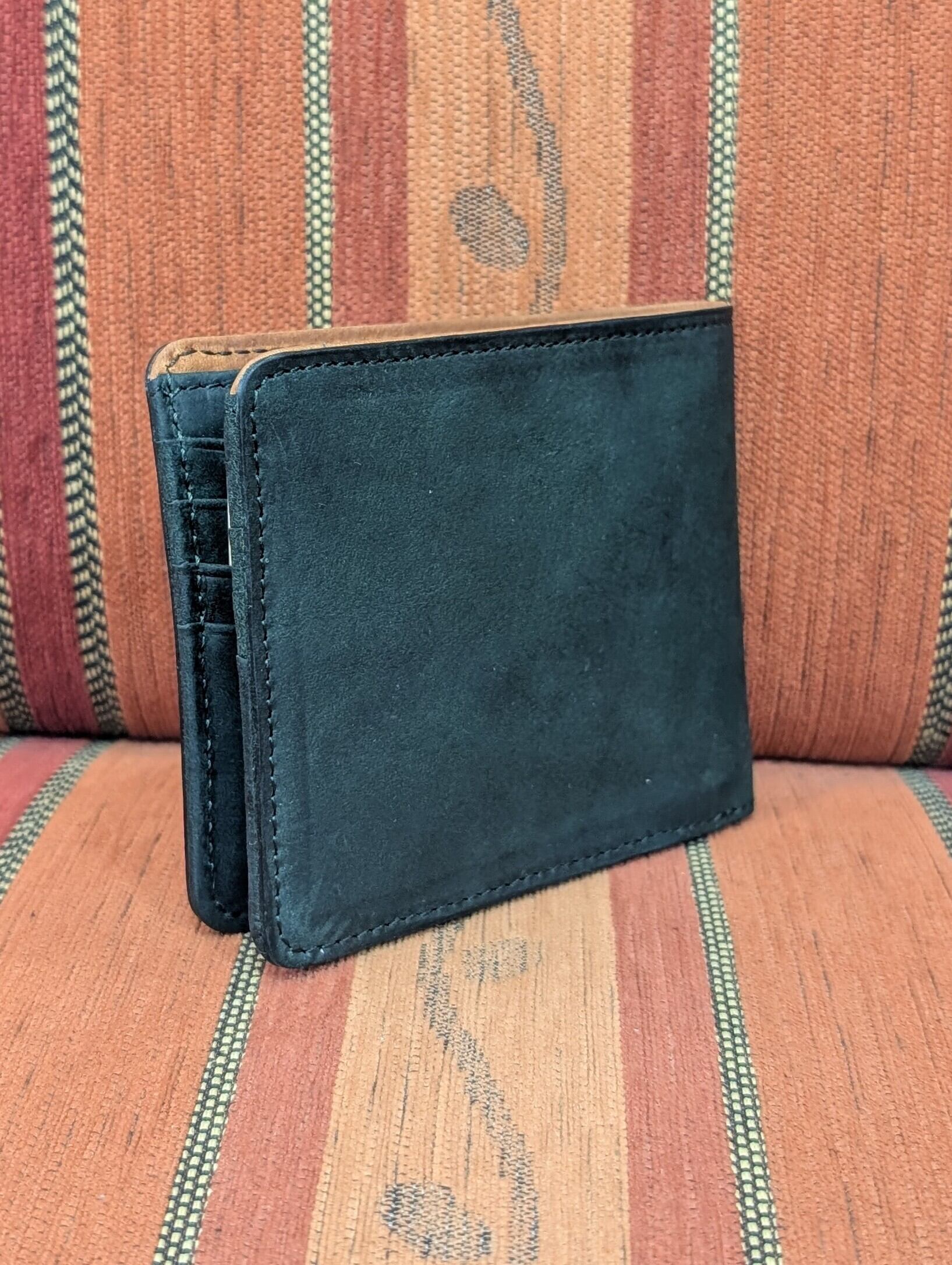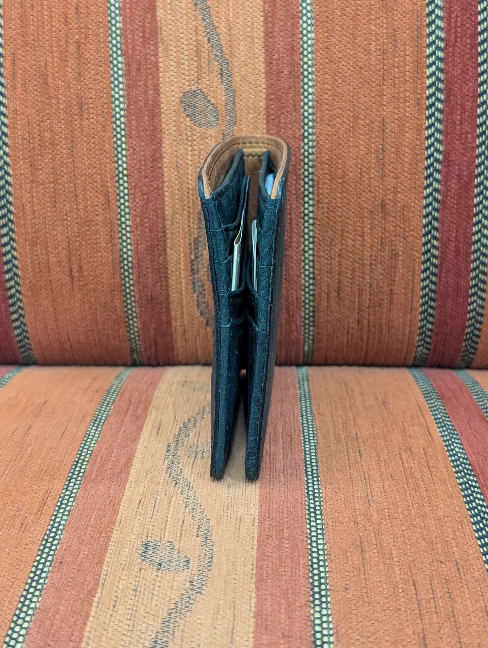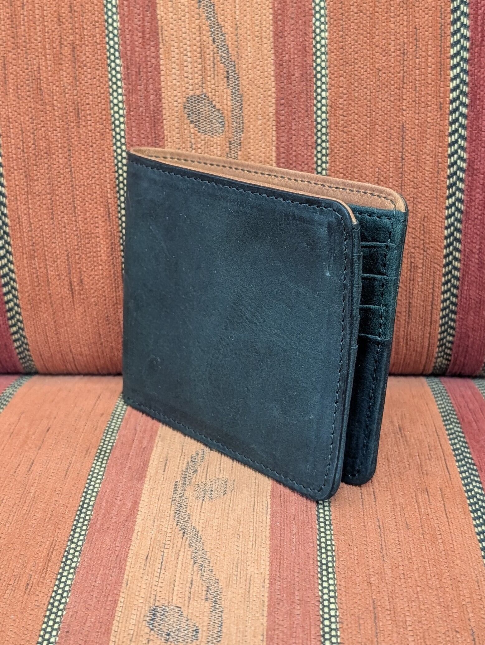 シンプルな2つ折りサイフは、飽きずに永く愛用できること請け合いです。