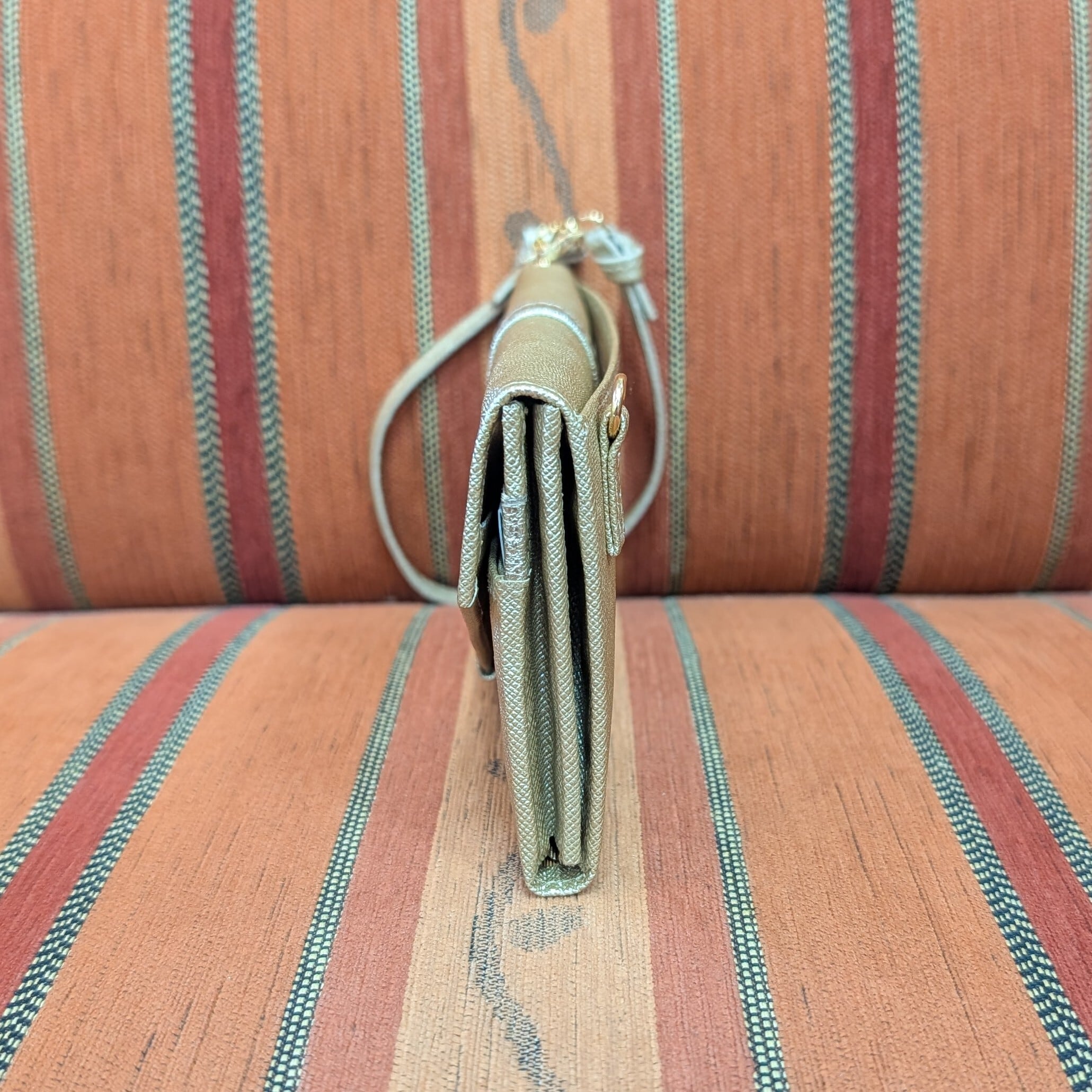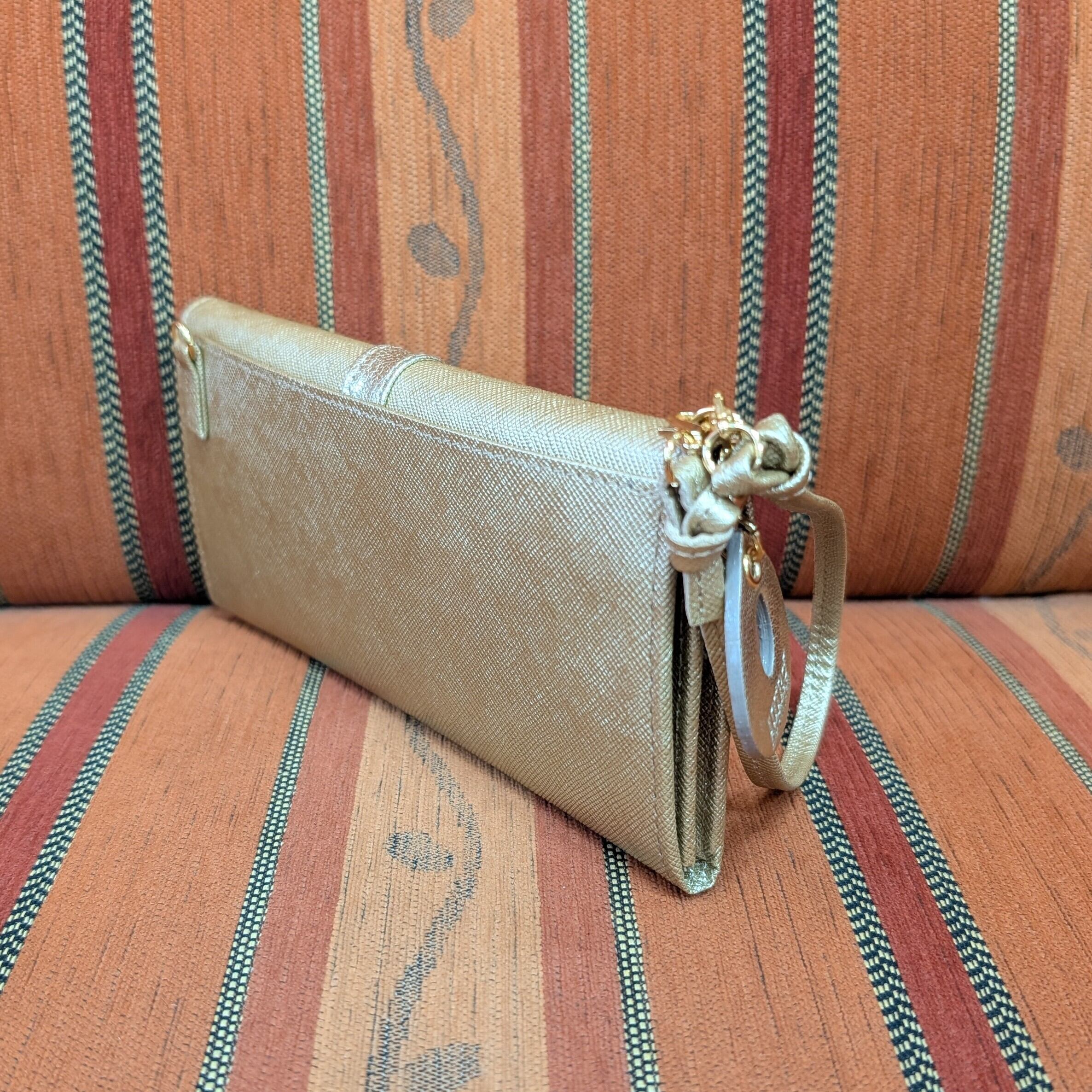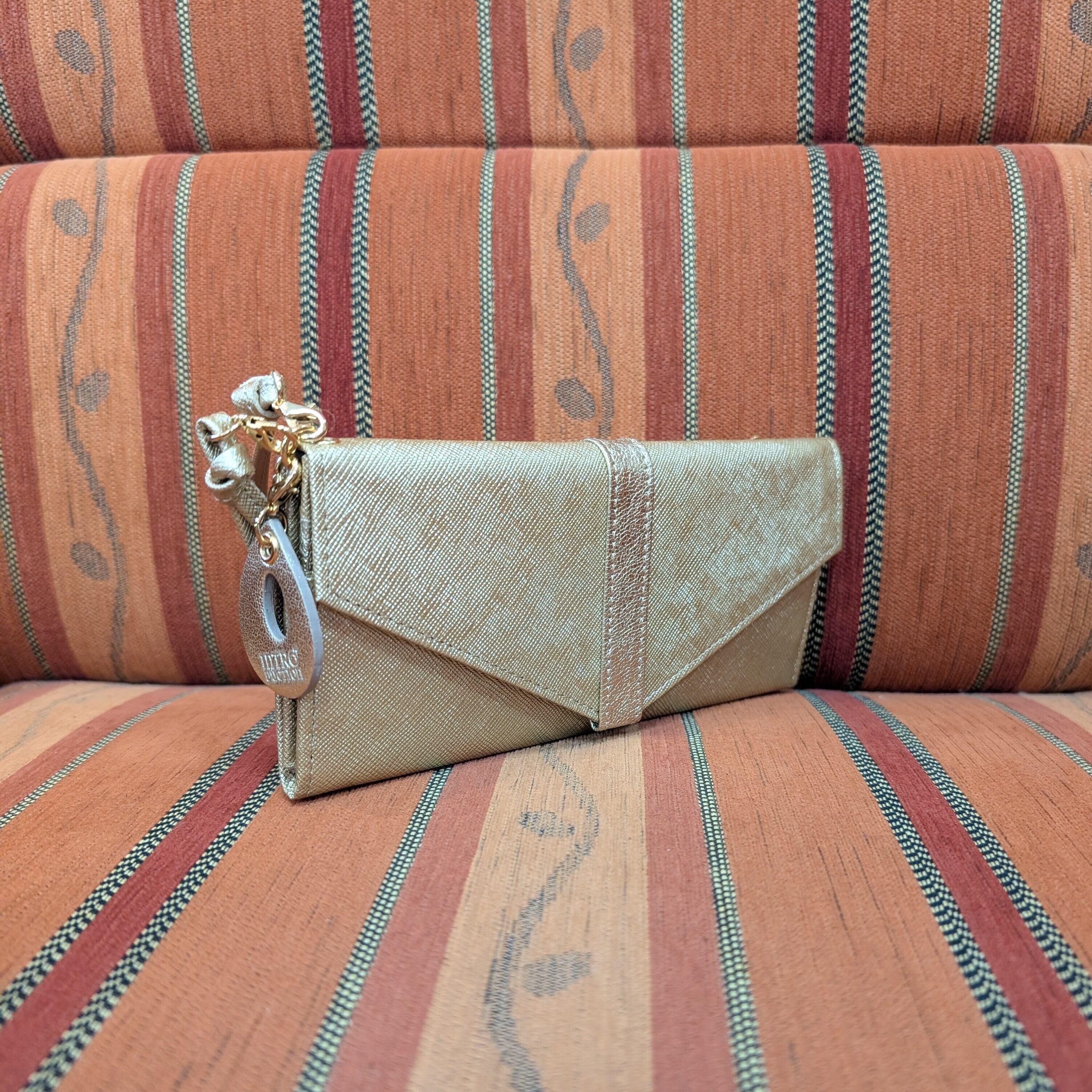 上品な飽きのこないスモーキーゴールド、山羊カクシボ革に箔加工がアクセントの人気のシリーズ。