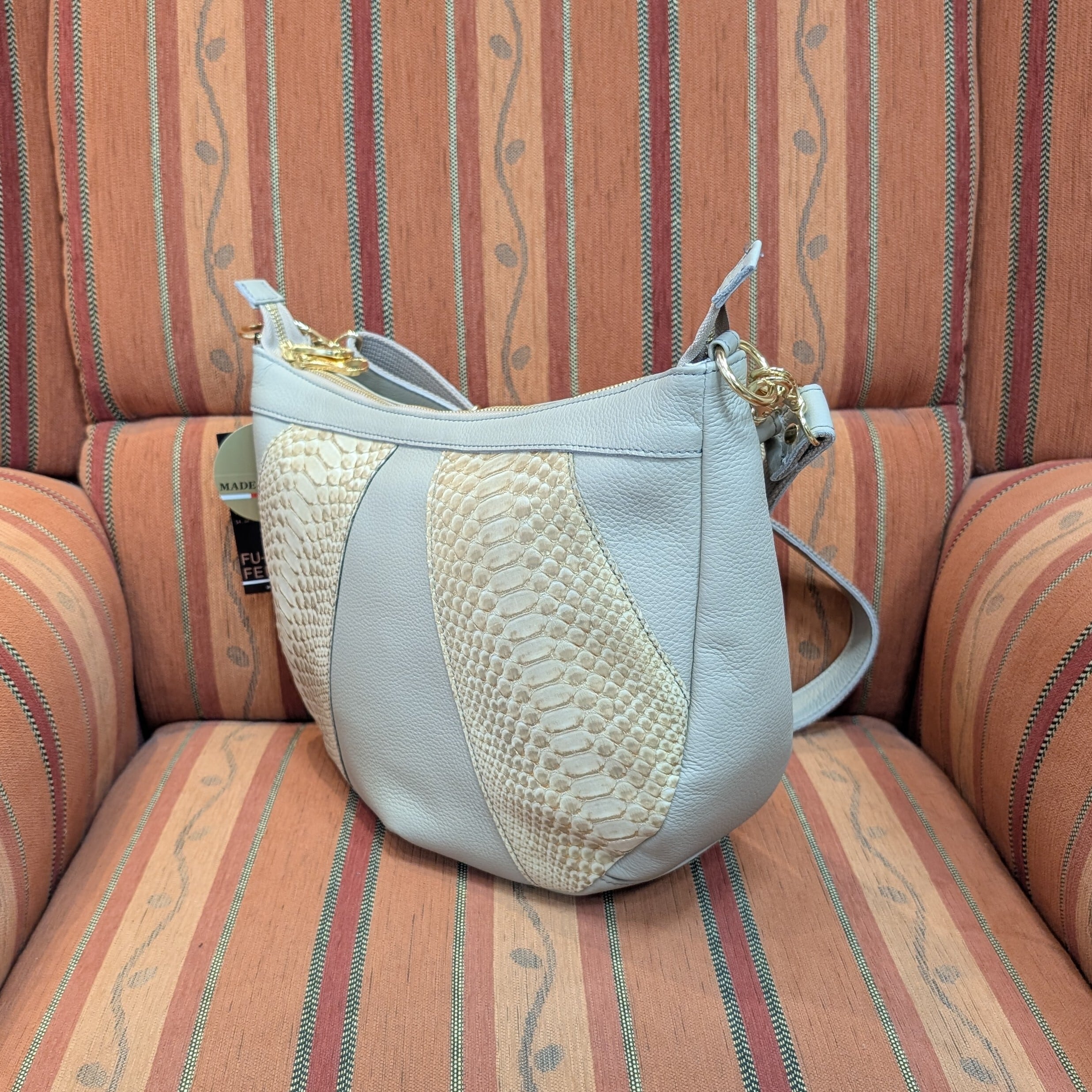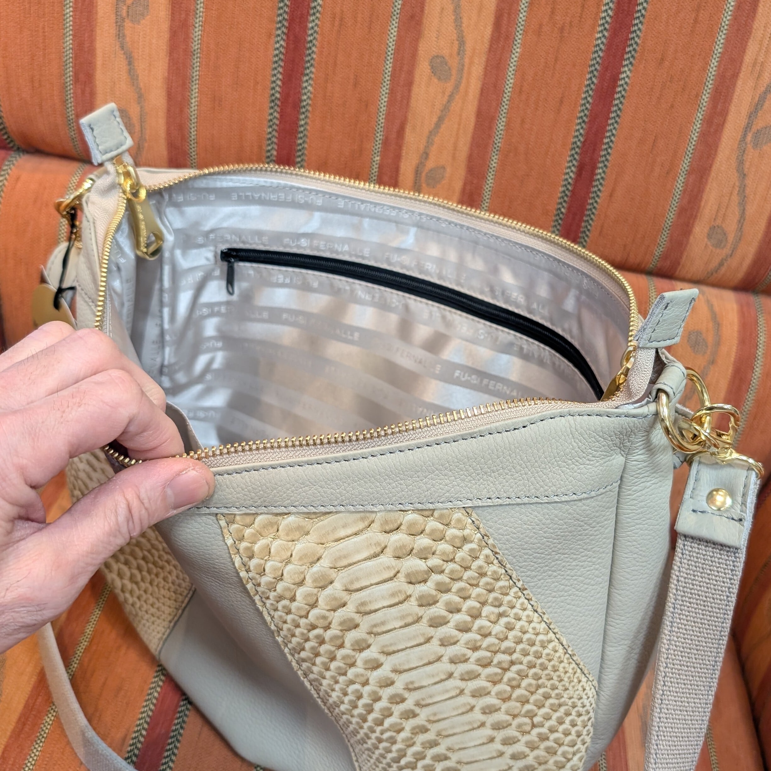 春の新作2wayショルダーは、シルキーパイソンとソフトレザーを組み合わせました。
