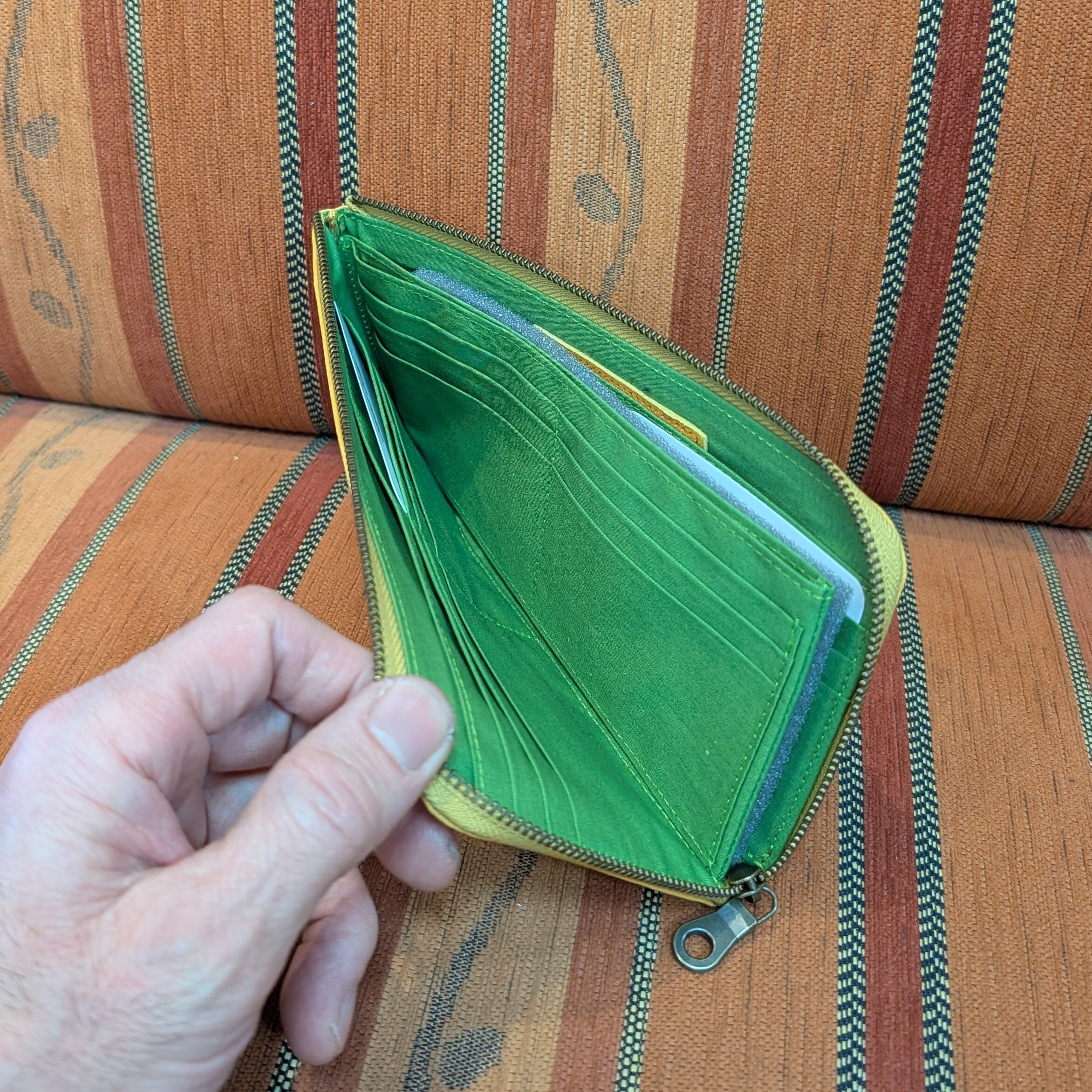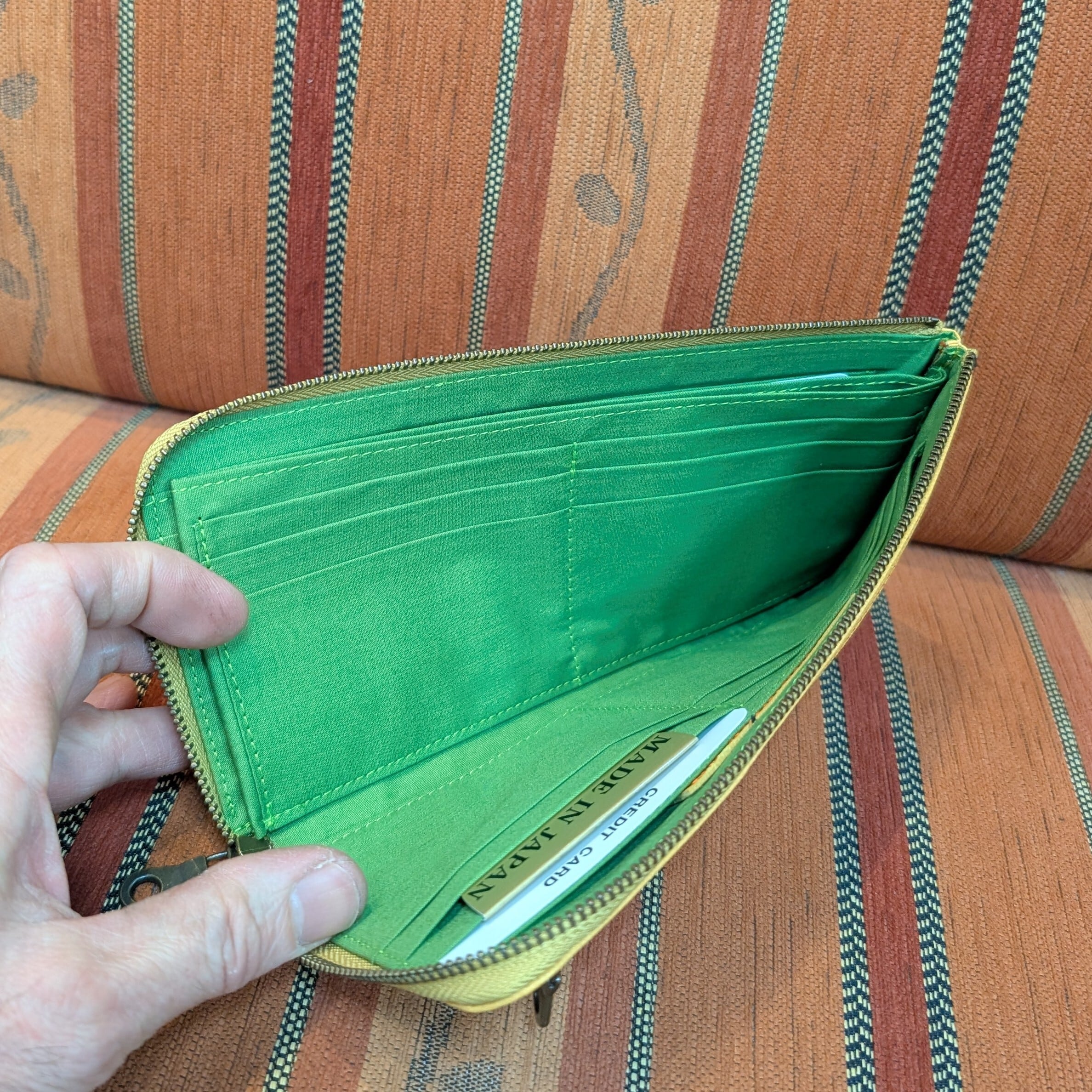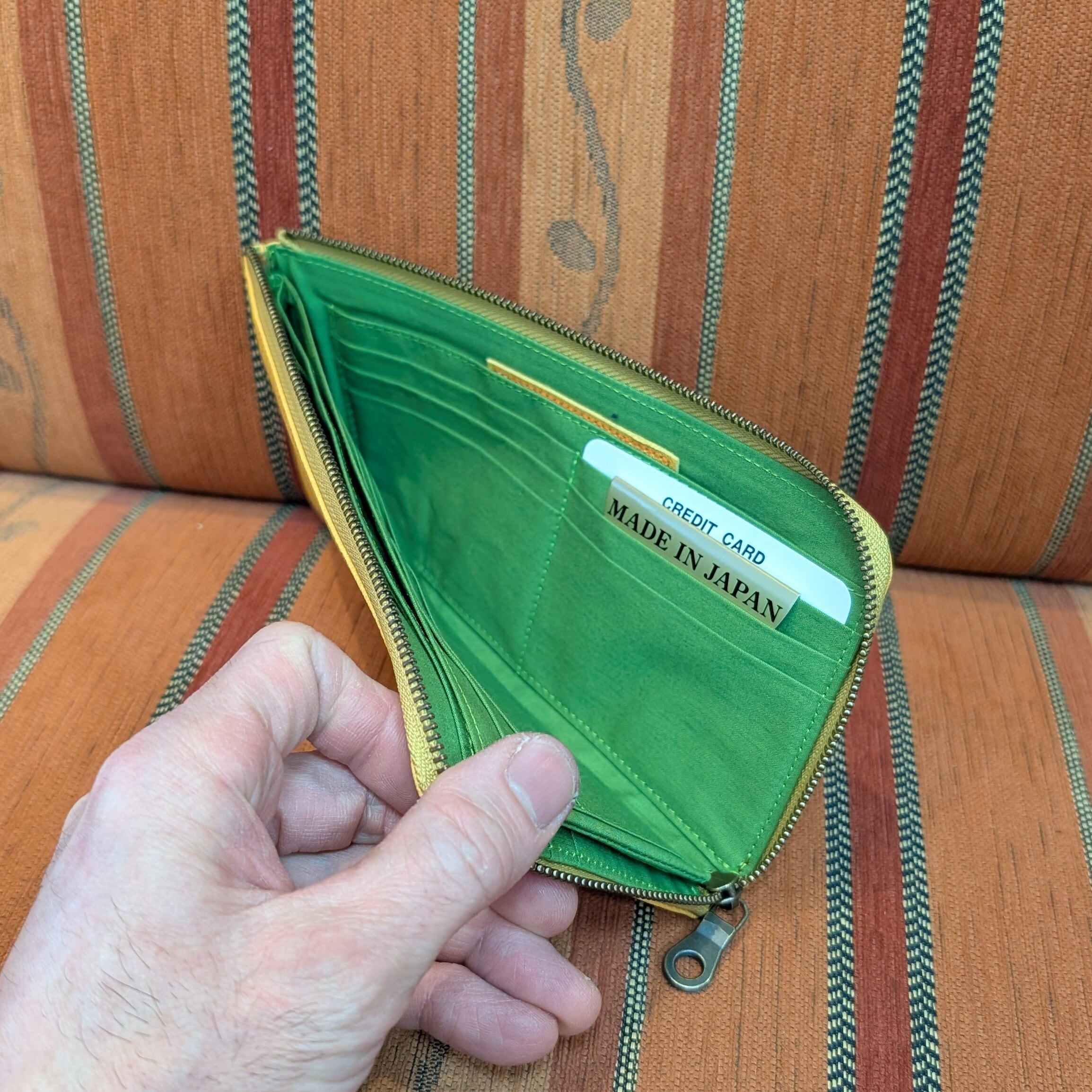 日本製のカラフルなキッド皮革(仔山羊革)を使用したL字ファスナー長財布をご用意しました。