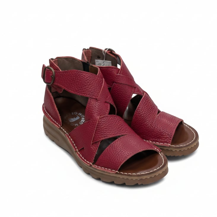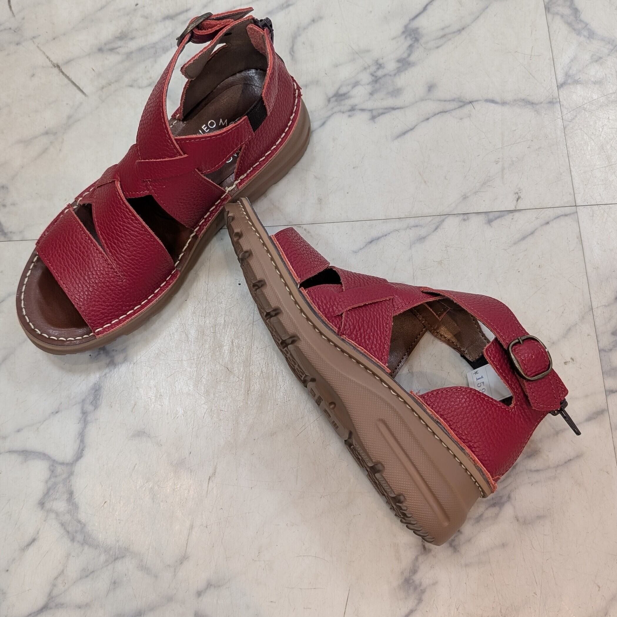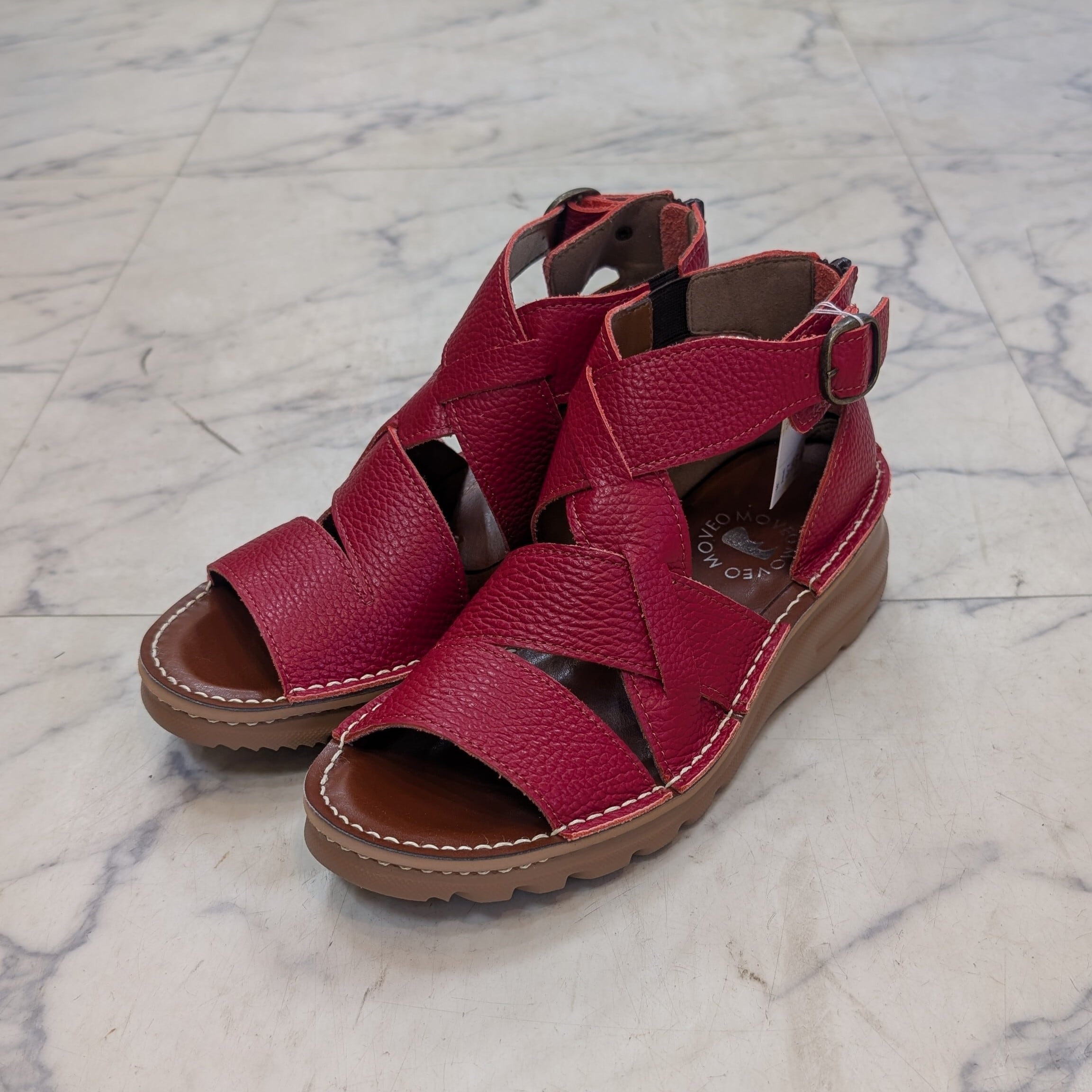 MOVEO 新作 4.5cmヒール 牛革グラディエーターサンダル レッドカラー
