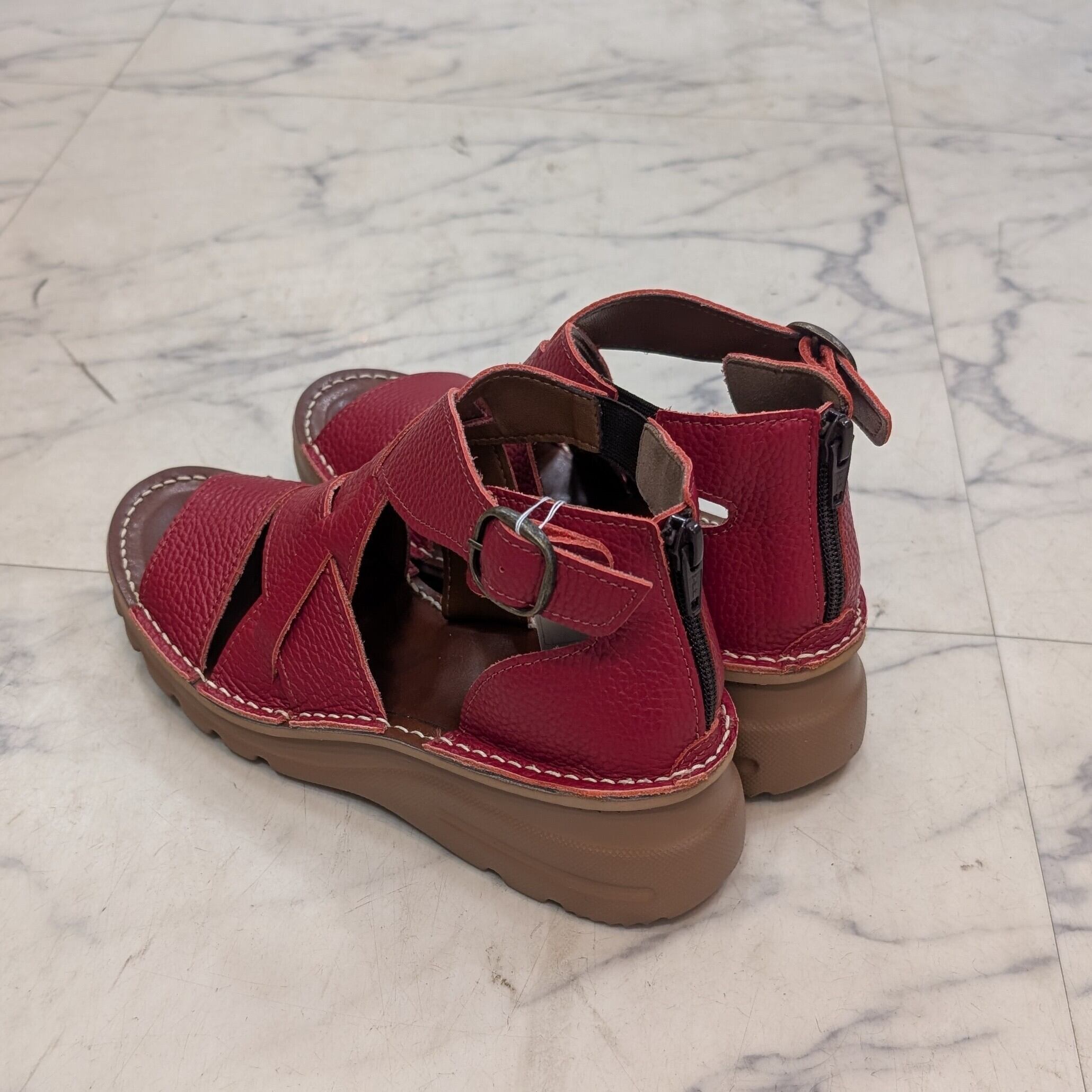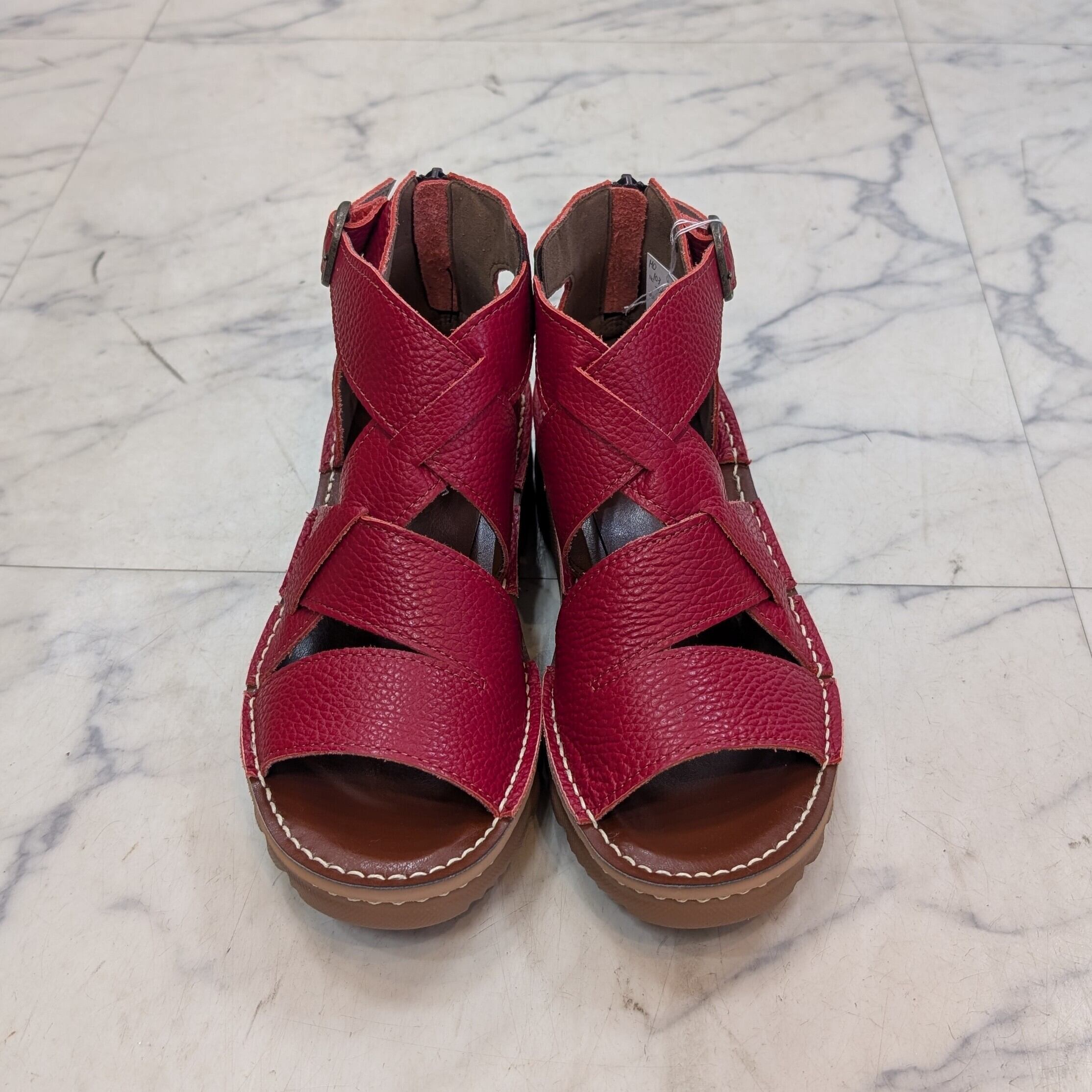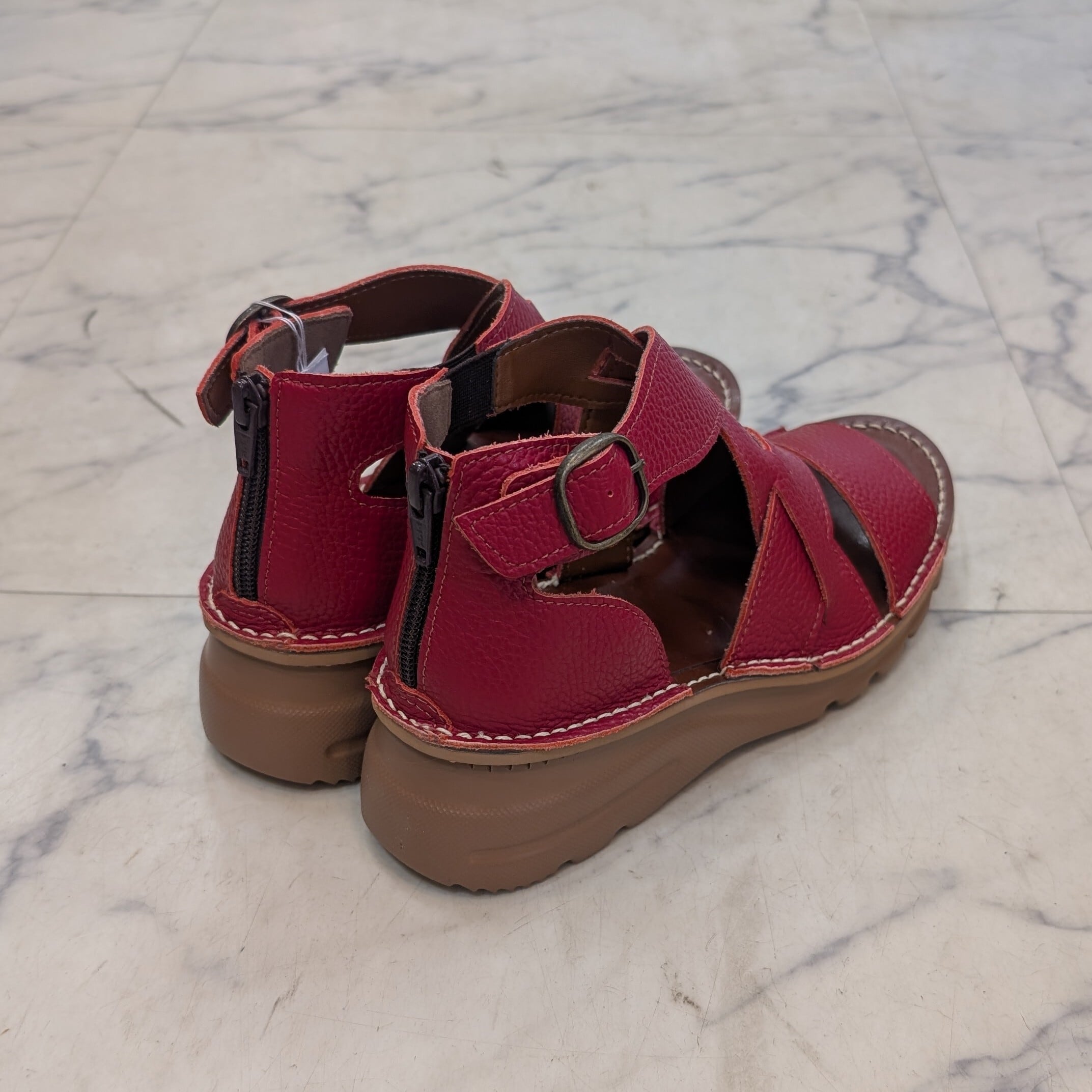 MOVEO 新作 4.5cmヒール 牛革グラディエーターサンダル レッドカラー