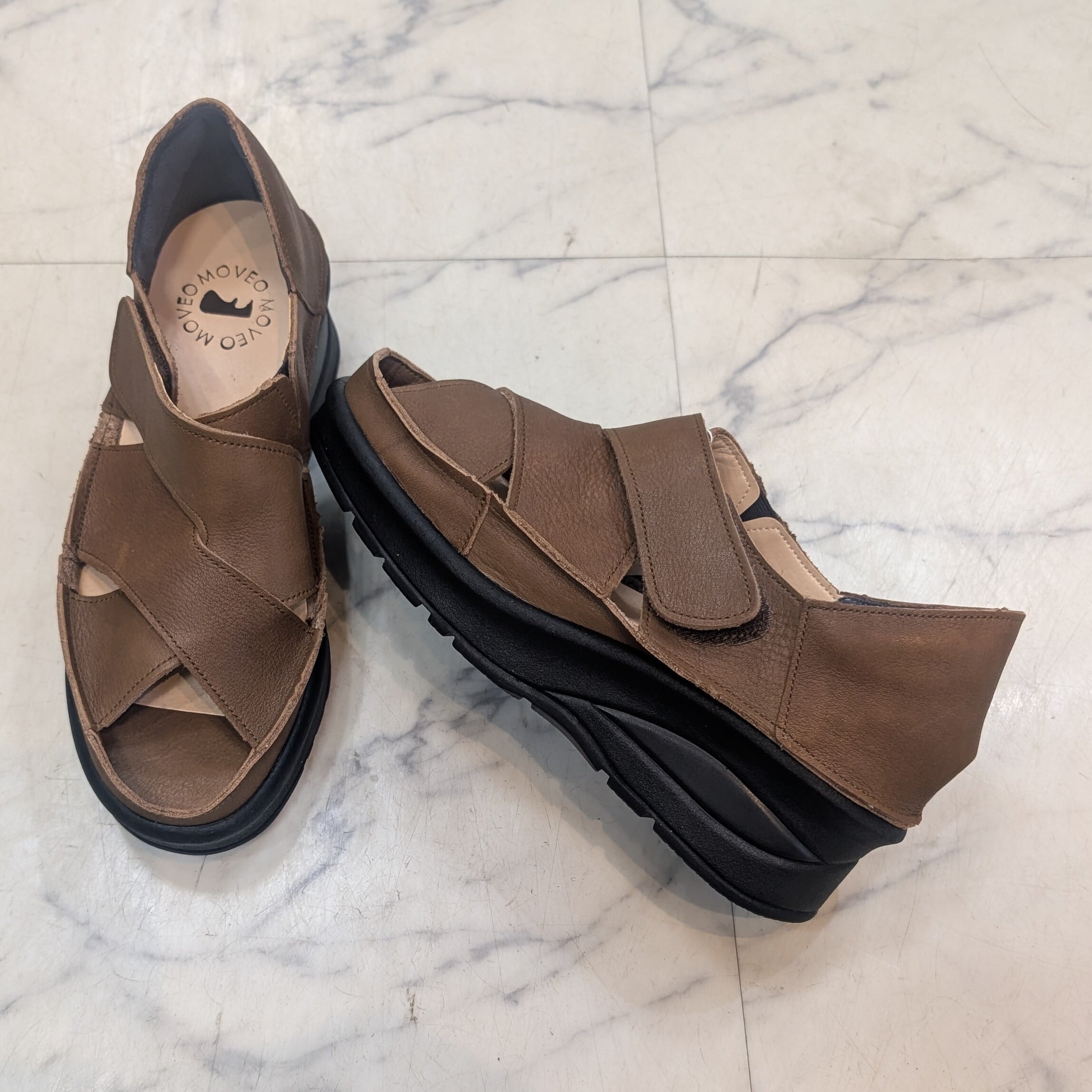 MOVEO 新作 4cmヒール ソフトレザーサンダル ダークブラウンカラー