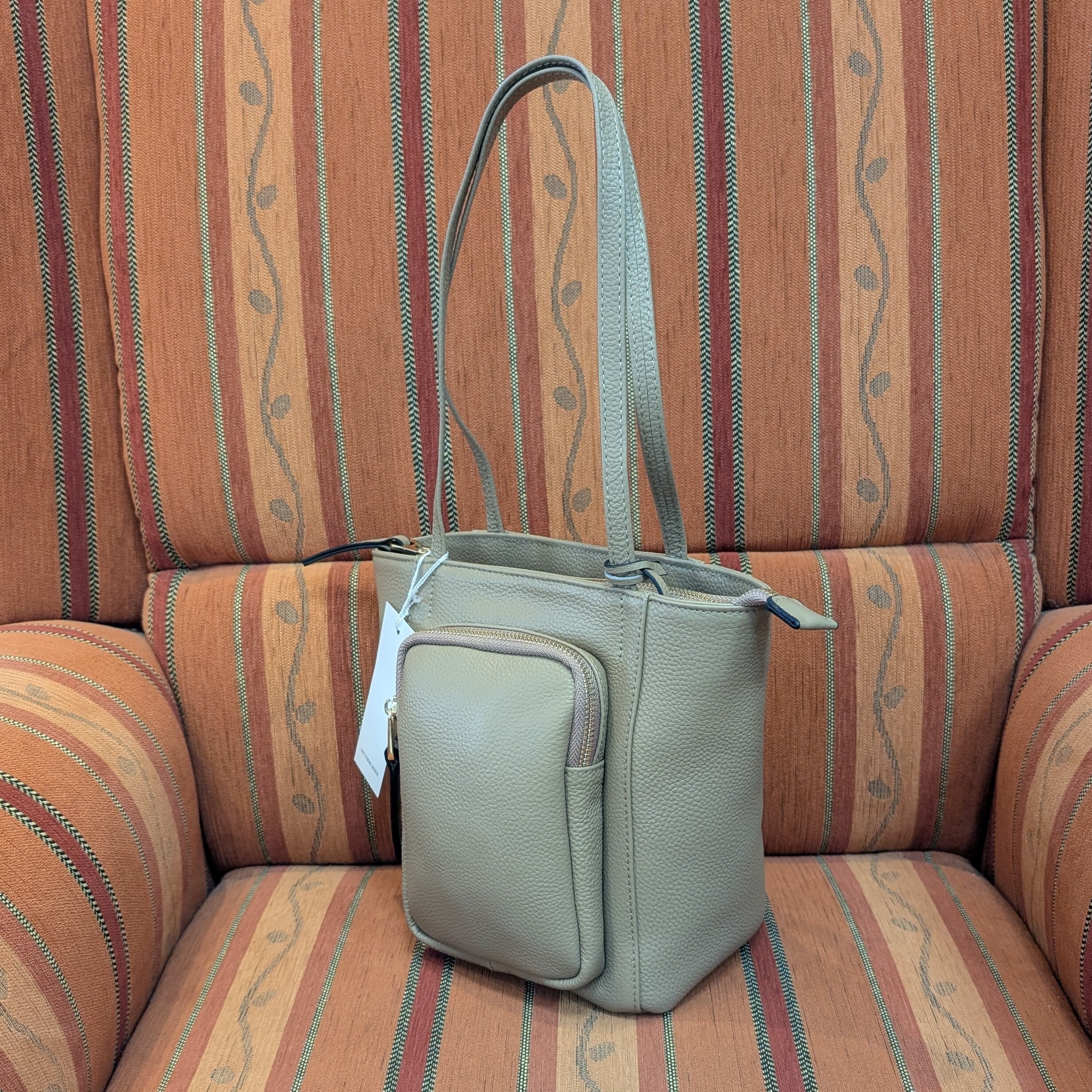 両アオリの使い易いサイズのトートバッグはフロントポケットがデザインのポイントです。