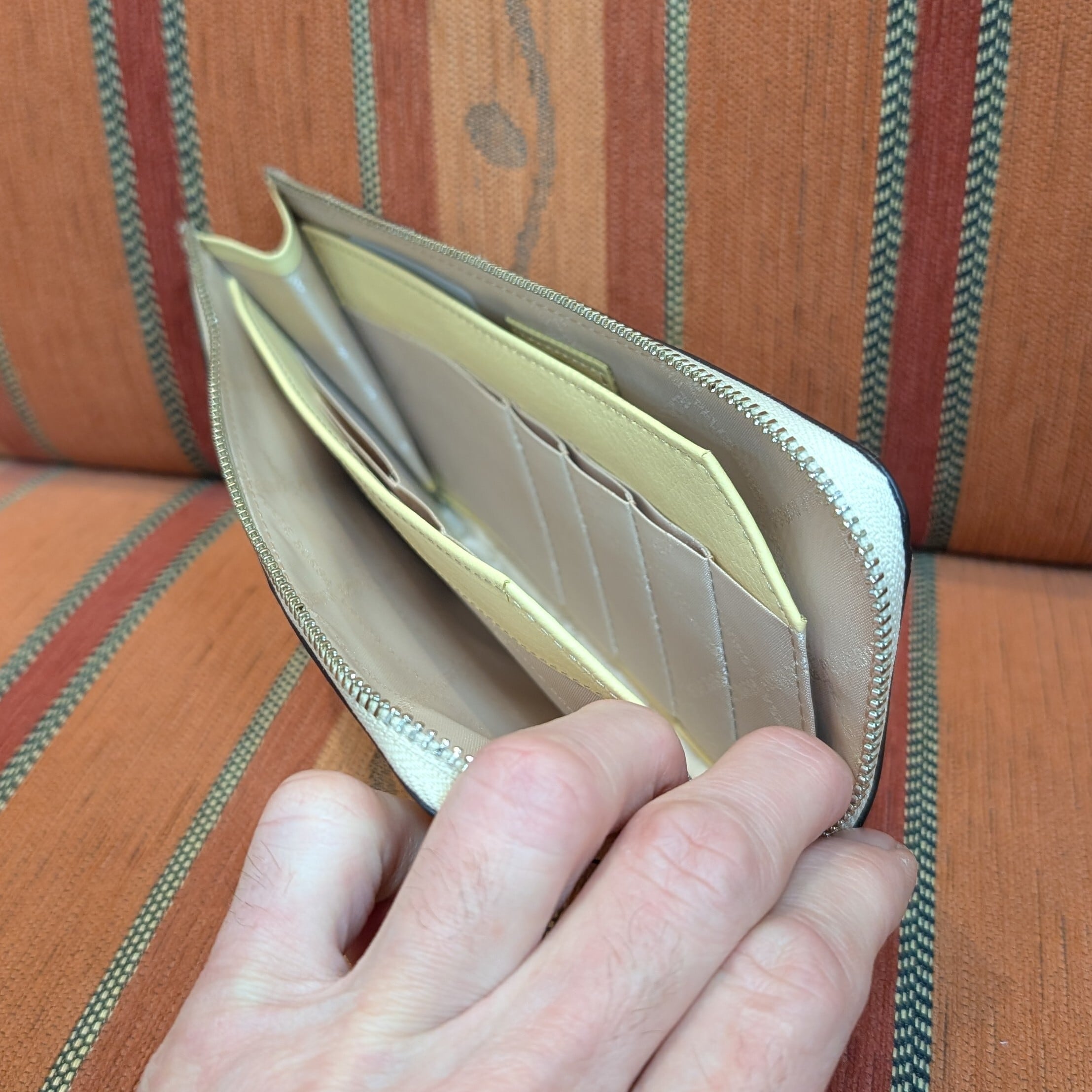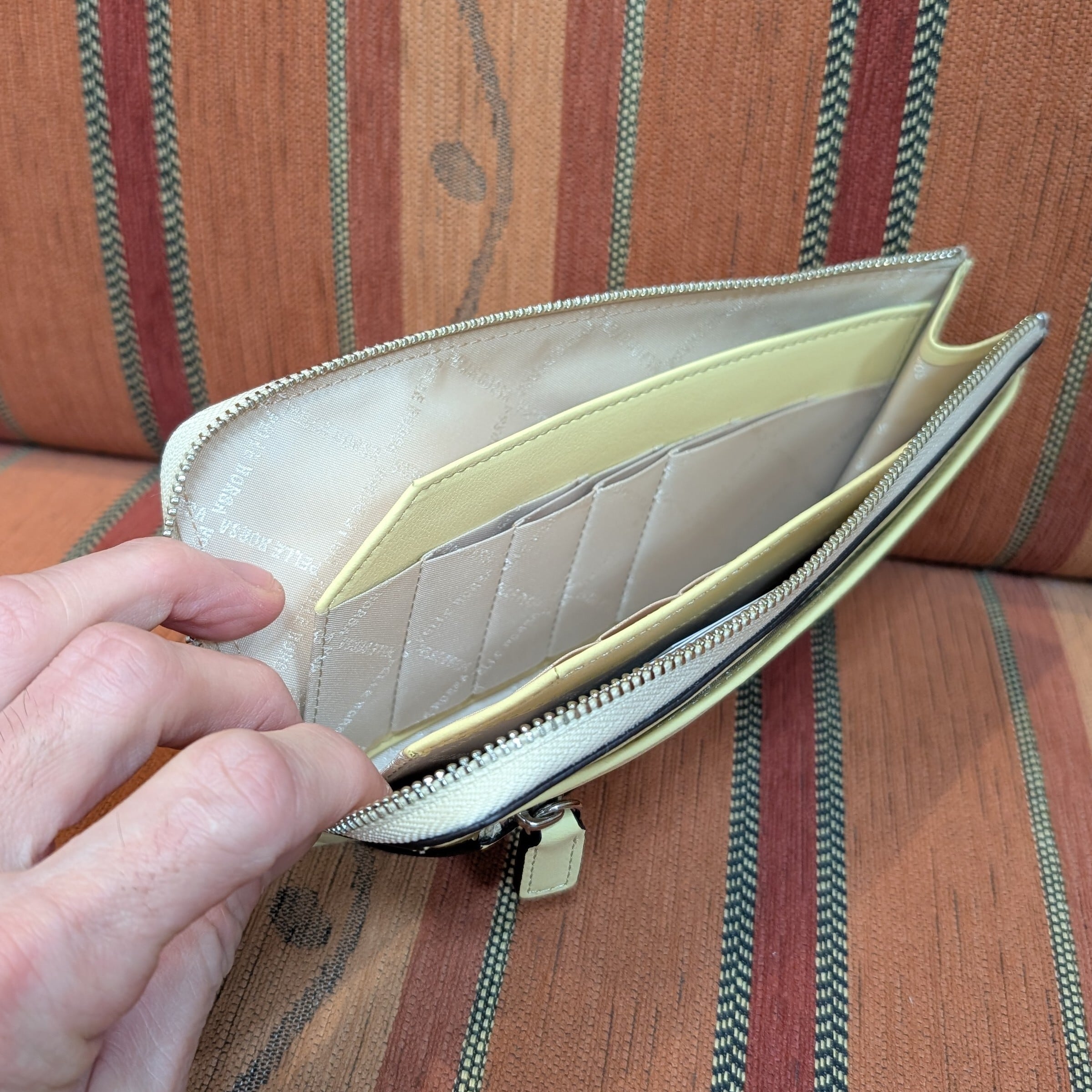 PELLE BORSA クロノウェーブ 薄マチL字ファスナー長財布 クリームイエローカラー