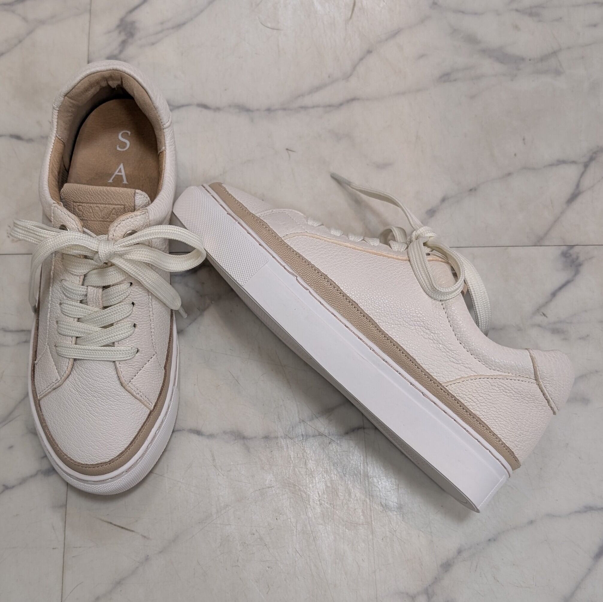 SAYA 3㎝インヒール本革レースアップスニーカー アイボリー