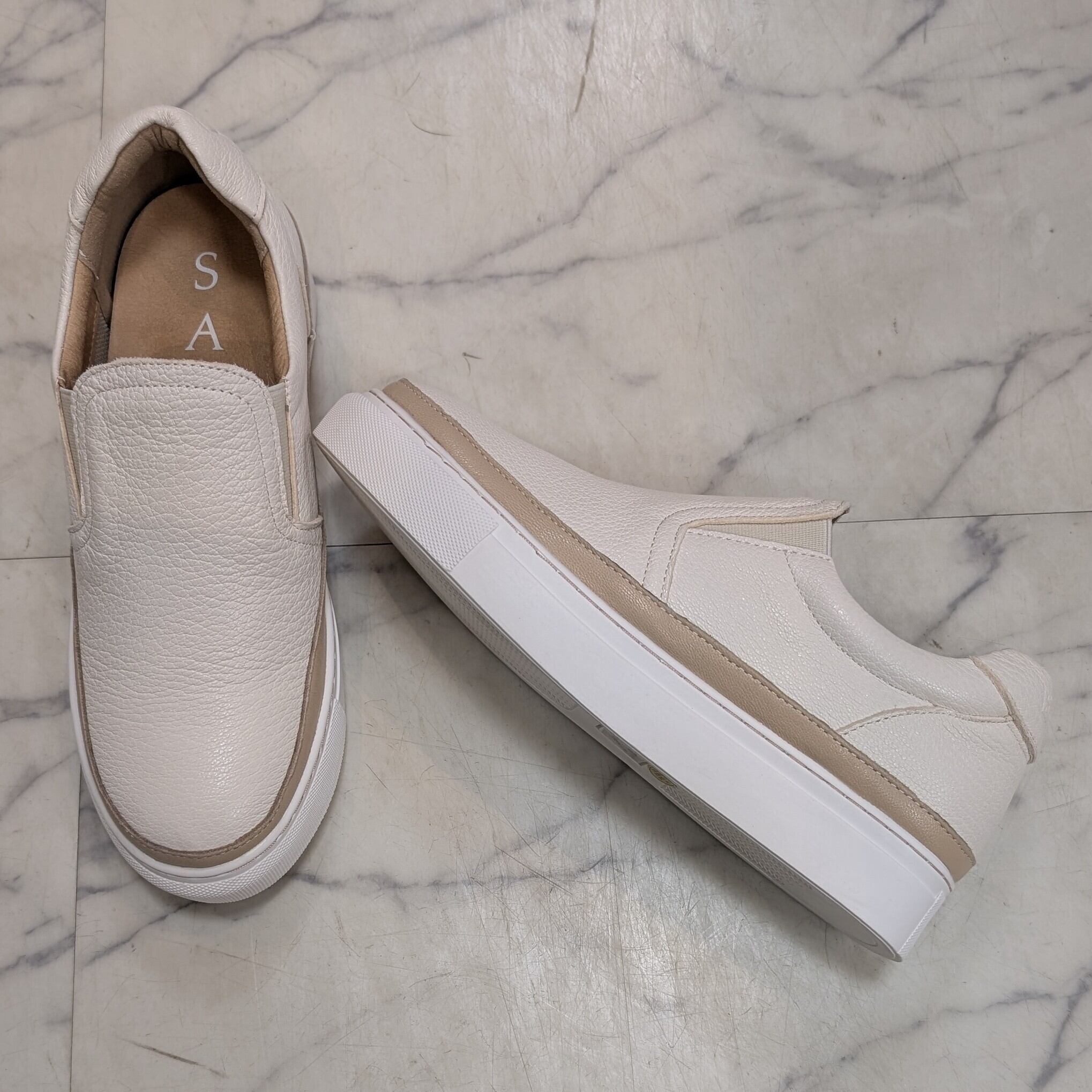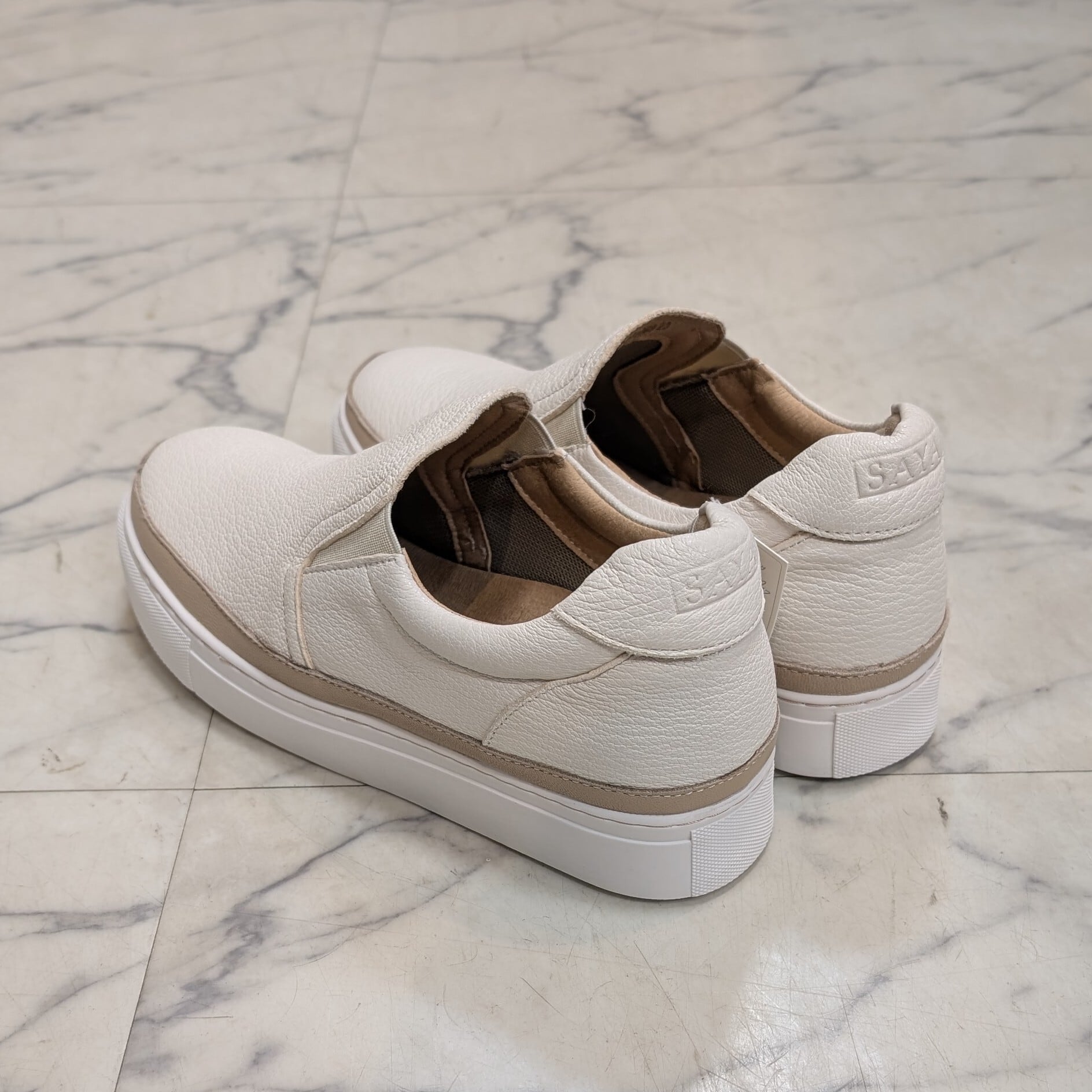 SAYA 3cmヒール本革インヒールスリッポンスニーカー アイボリーカラー