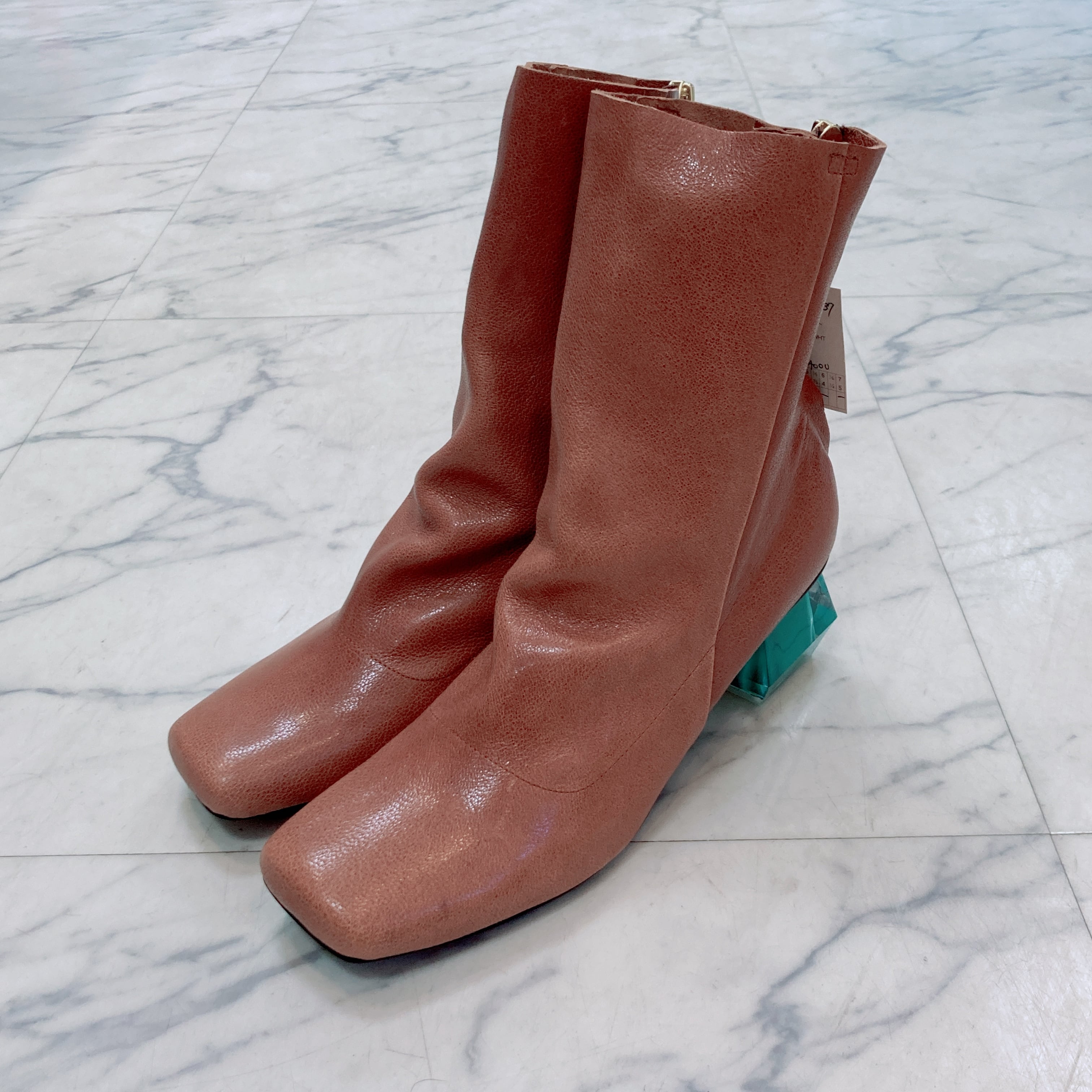 MANA クリスタルヒール使用! バックファスナースクエアトウブーツ ブラックカラー
