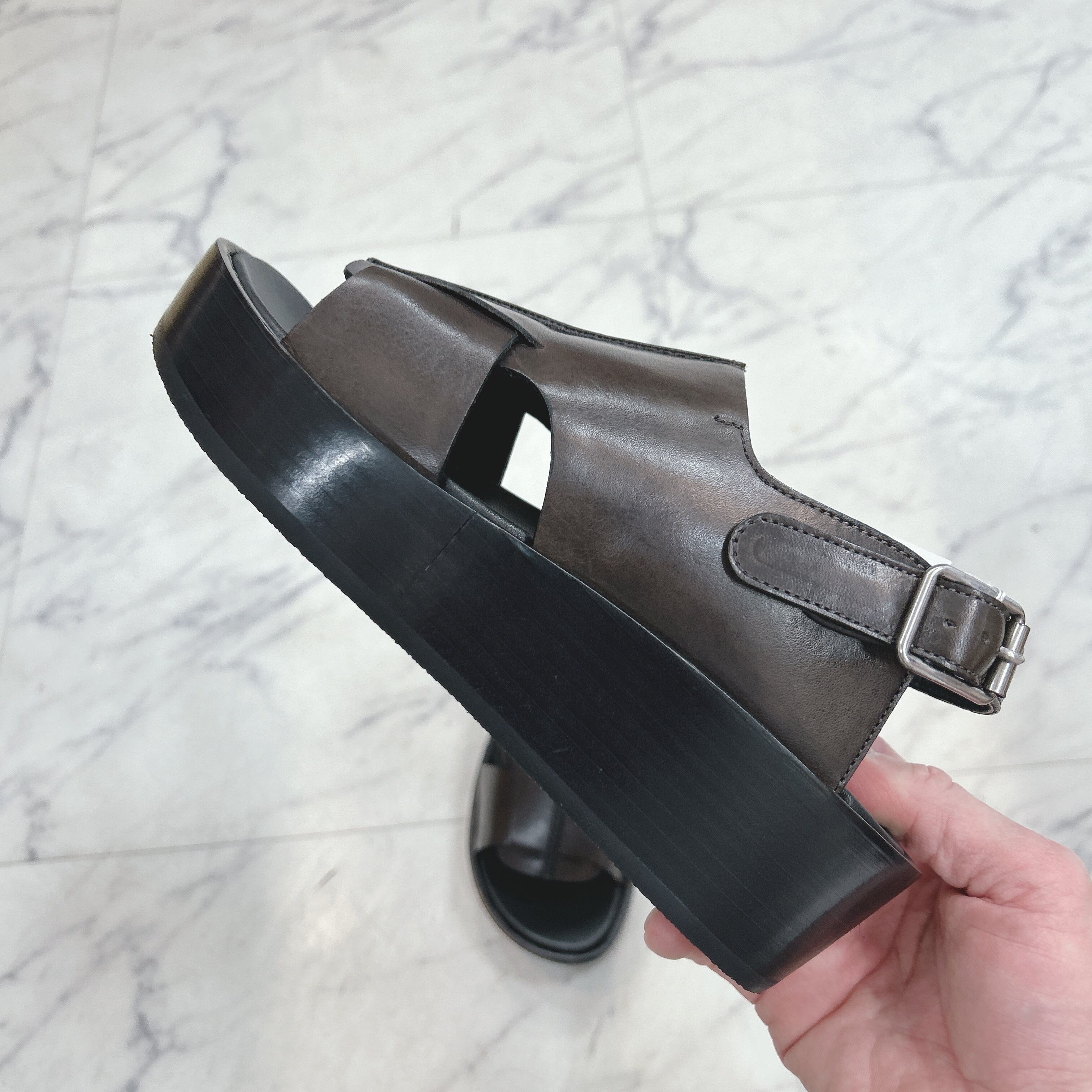 RABOKIGOSHI works 2WAY50mmスタック巻ソール本革フスベットサンダル カーキカラー