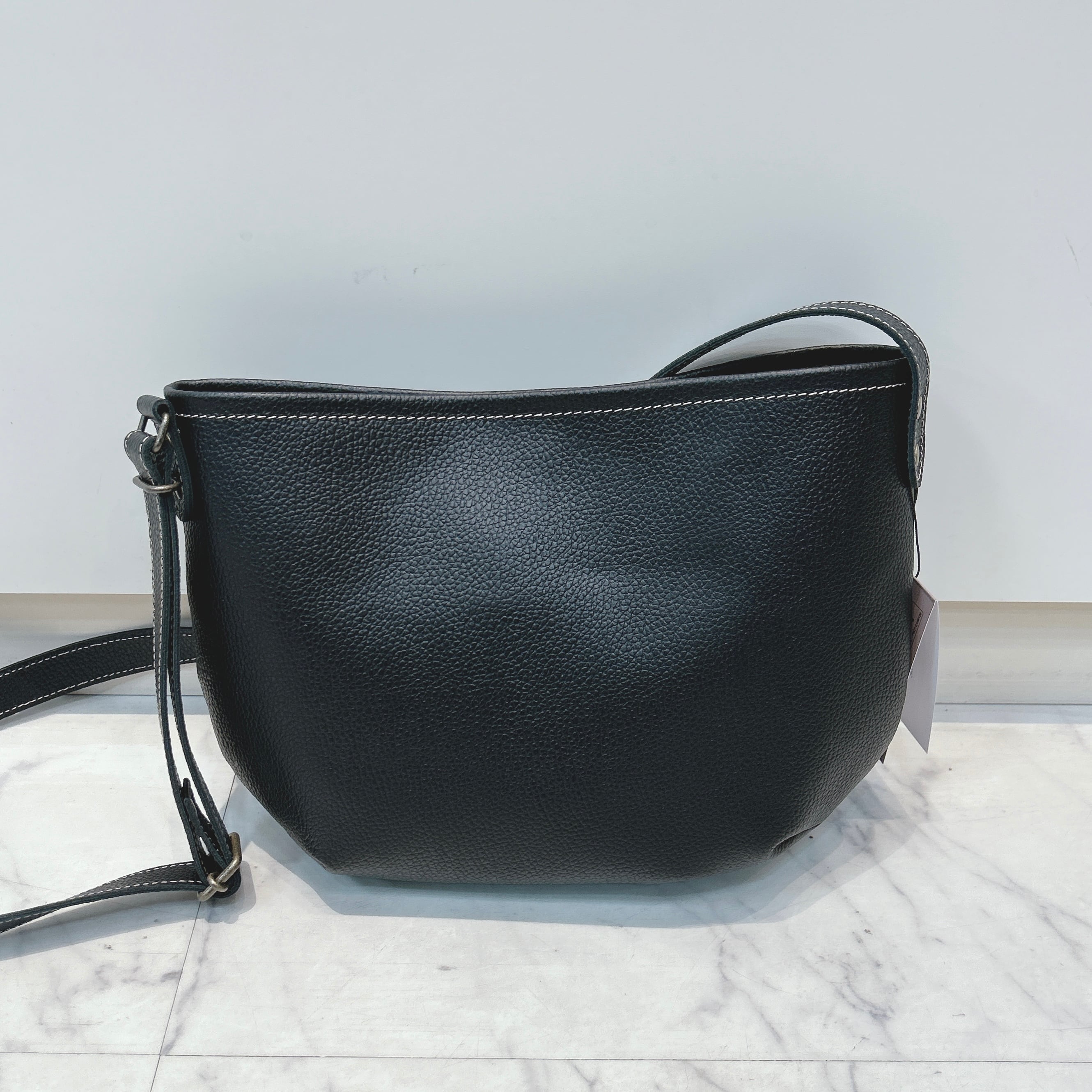 新たに入荷したショルダーバッグは細かなシボ加工を施した国産の牛革を使用。