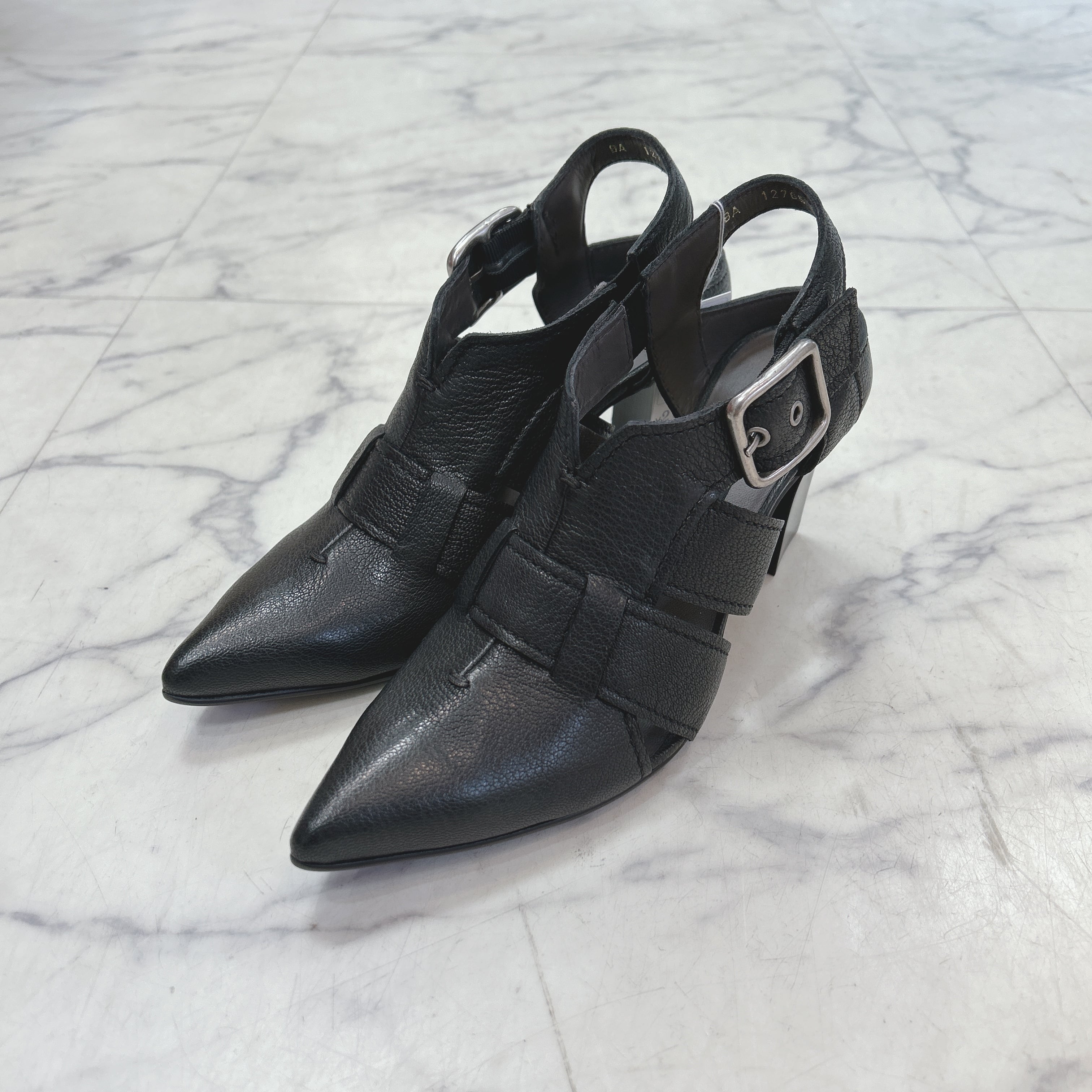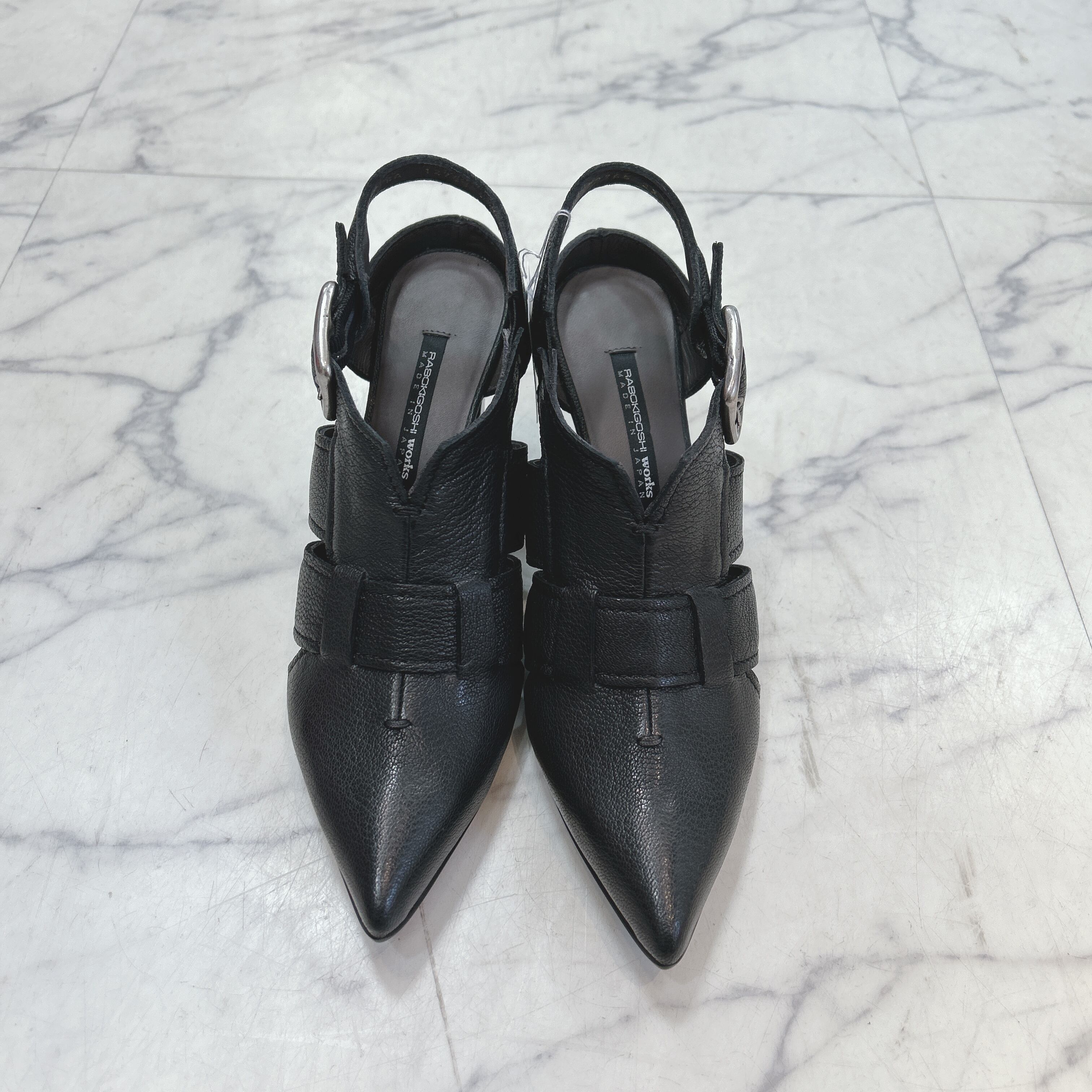 RABOKIGOSHI works 7.5cm本革 ポインテッドトウバックストラップ ブラックカラー