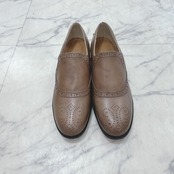 メダリオンやパーフォレーションなどの穴飾りに拘ったスリッポンシューズ。
