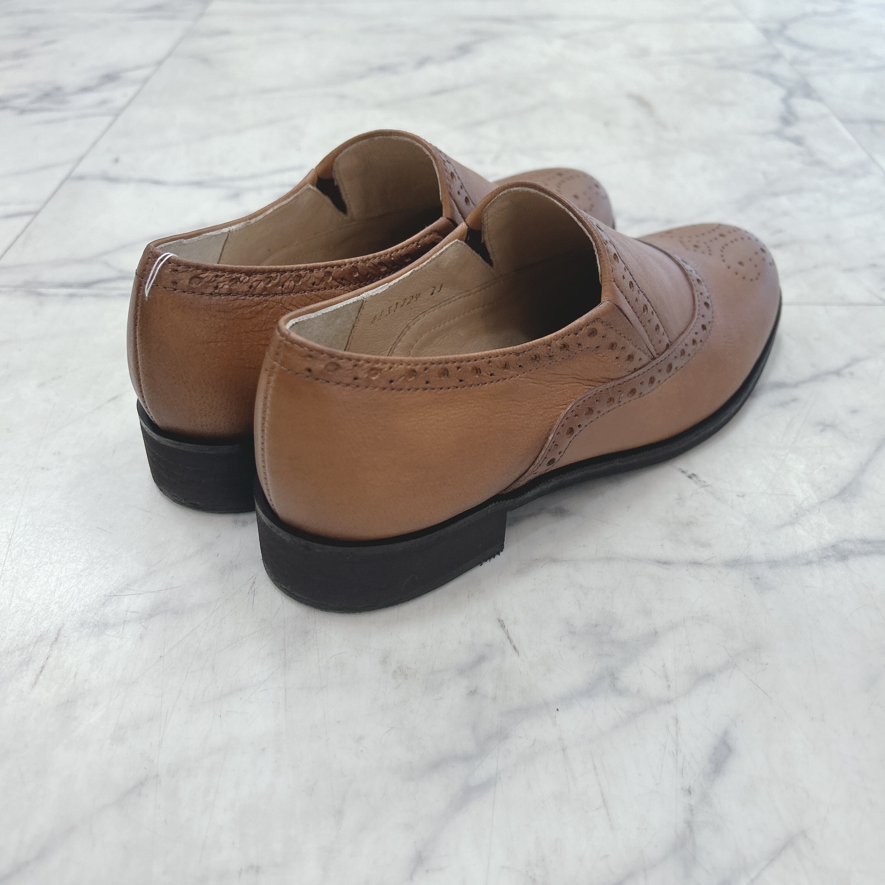 メダリオンやパーフォレーションなどの穴飾りに拘ったスリッポンシューズ。