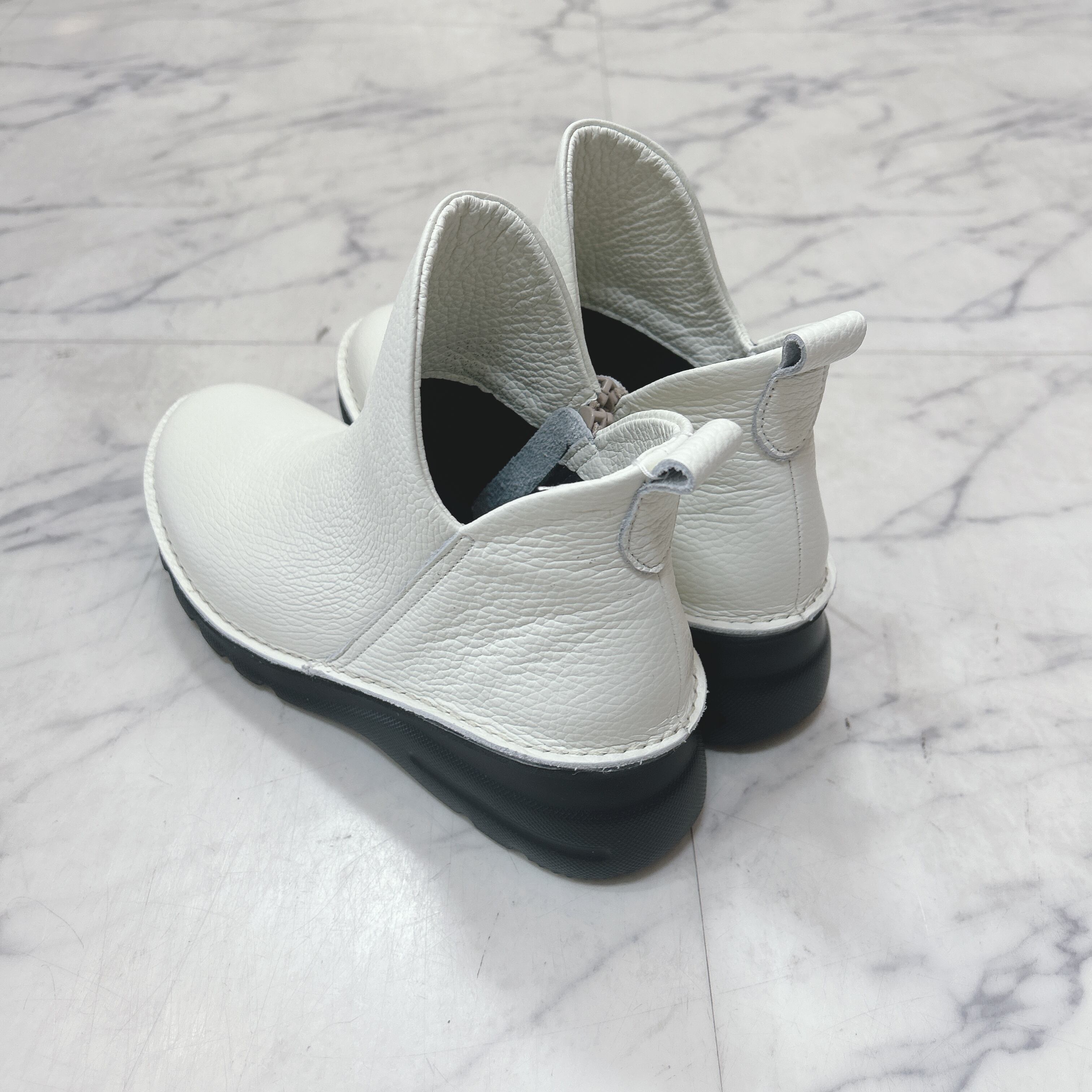 MOVEO 軽量 本革ショートブーツ アイボリーカラー